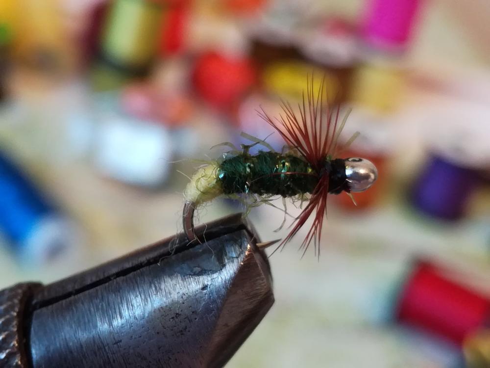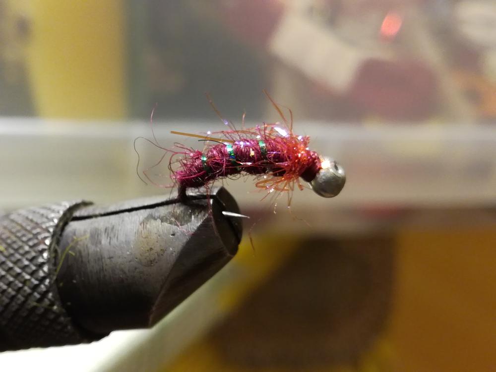 Связал на пробу поярче,с хитрыми подслоями,для мутной воды.