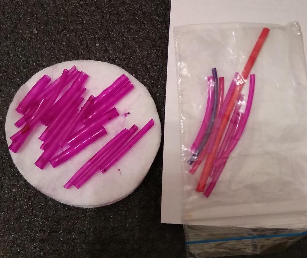 Пробы отмокания в растворе. Час-полтора где-то. Справа изделия от Алексея. Тонкие-от системы-бабочки, потолще-растянутые системы. Ёмкость-пузырёк от лака для ногтей, длинные трубочки макать проблематично.