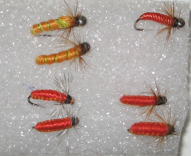 Навязал чуть всякого. Левый верхний квадрант-пробы мухи от Евгения, с разными желтыми подслоями и оранж шерсть,