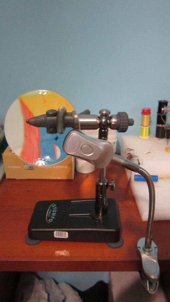 Обзавелся вот таким девайсом для муховязки. Увеличительное стекло на гибкой ноге с подсветкой ( с внутренней стороны имеется пара светодиодов, подсветку не протестил в наличии нет батареек). Приобретал ТУТ