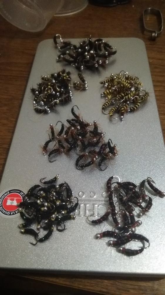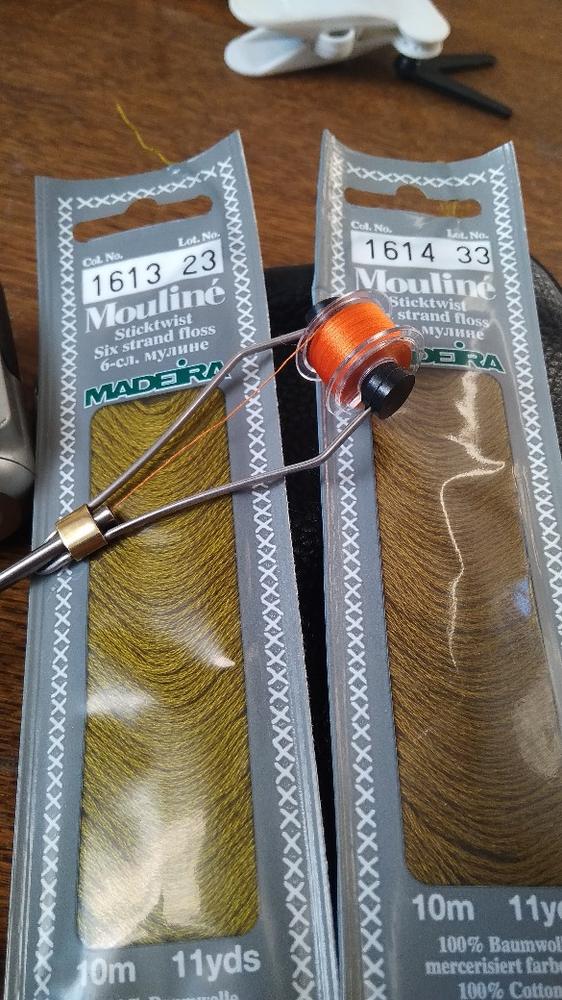 После, попытался скопировать. Не уверен что оригинал плели из таких же материалов, но у меня данная муха периодически постреливает. Регулярно ставлю ее на настрой. Осенью прошедшей, пока бродили с Серегой по острову на Лугавке, парочку так же на нее изловил.