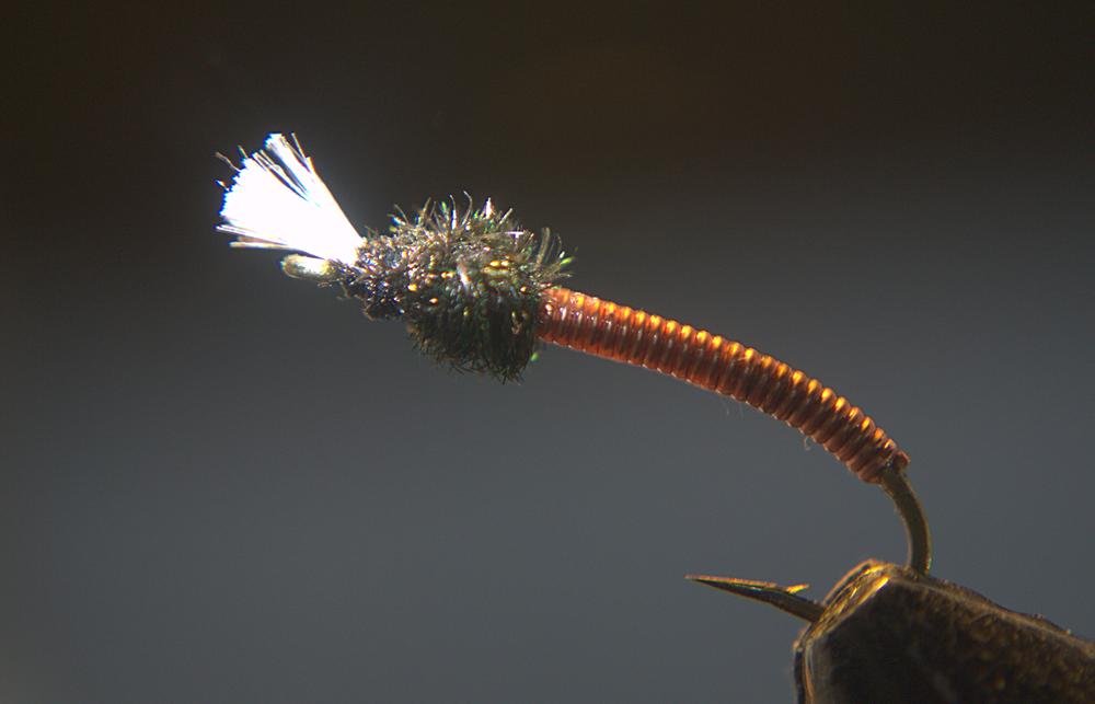 Несколько лет назад интересовался ловлей карася. Немного поэкспериментировал. Поймал несколько штук вот на такую муху. В тот день эта была единственной, на которую клевало.