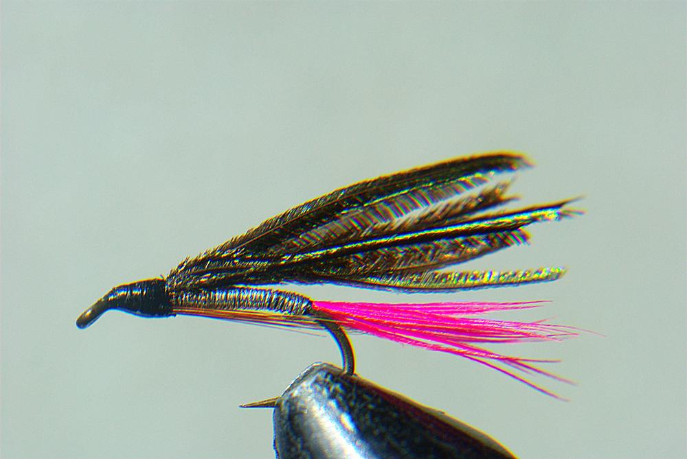 Интересная, можно попробовать, цвет пера на хвостике лососёвый однако, у меня пока таких перьев нет. Кстати понравилось вязать тушку из пера, чуть отработал технику. Ну и прикупить разного цвета горжеток, это перьевое эльдорадо)))