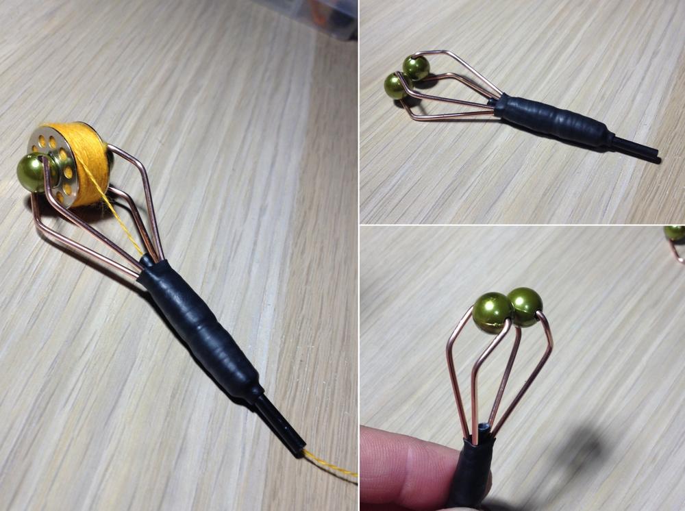 Отличная конструкция бабинодержателя для маленьких шпулек. Давно подсмотрел на просторах интернета, только сейчас руки дошли сделать. В отличие от двухусиковых бабинодержателей здесь шпулька сидит хорошо, плотно, и не стремится съехать в сторону (кто вяжет, знает).