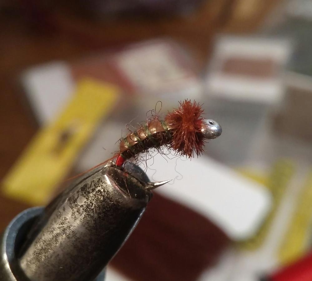 Темно-коричневая гамма и всякие подслои. Если даже хариусу не вкатит, то окунь съест. Частенько вешаю такие украшение чуть выше балансира или блесны. Крючочек 14 номера скуд.