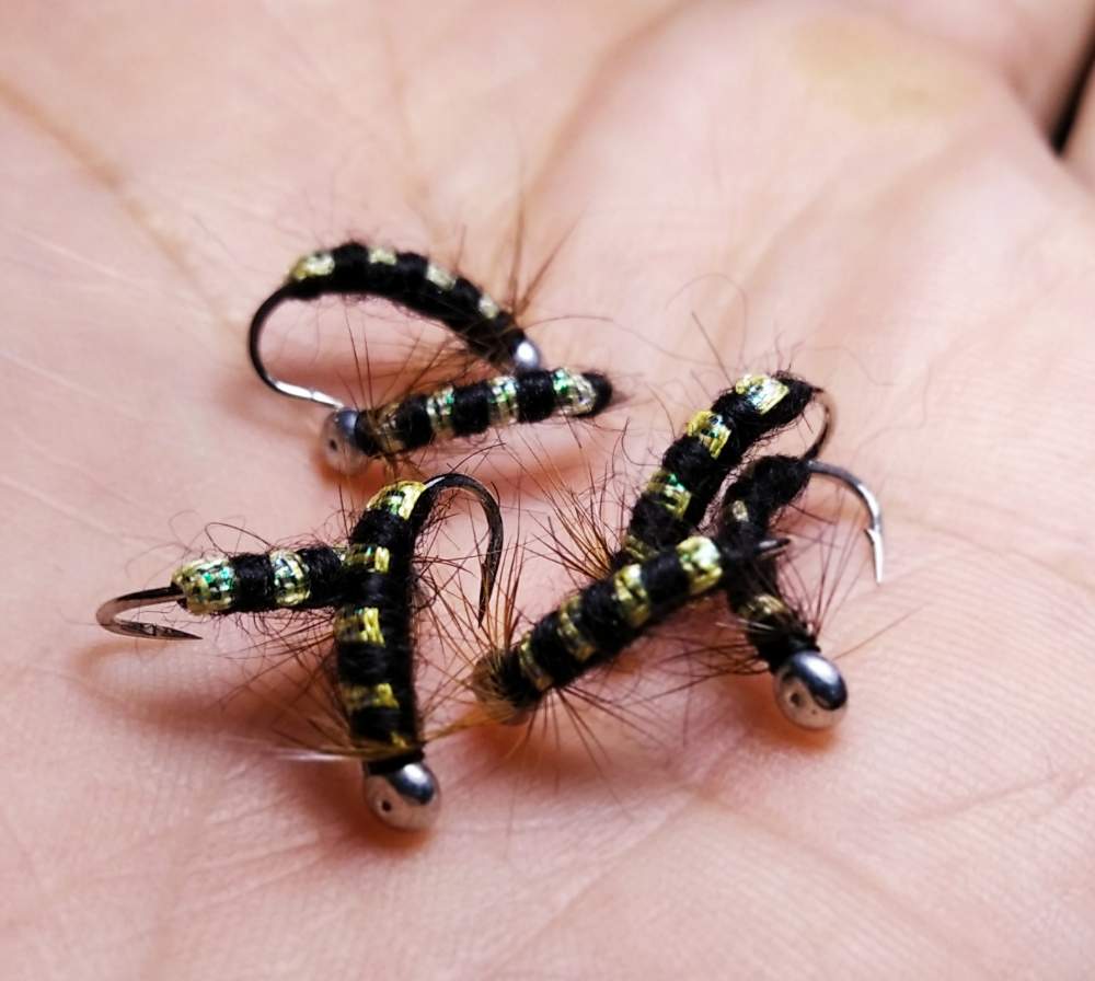 S-12 и шерстяная нитка от черной вдовы, дубасила муха хариуса пока не оторвал. Вот ещё подвязал. Остальные ленточки пока не разловлены
