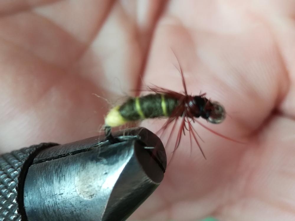 Привет! Ты про такой вариант говорил? Мне он очень нравится. Делаю так на некоторых мухах. Есть у меня синтетическая шерсть кусочек, с нее и дергаю дабинг на опушку идеально подходит, грубая, крупноволосистая. Жалко заканчивается, не помню с чего брал, но предполагаю что с какого-то ковра.