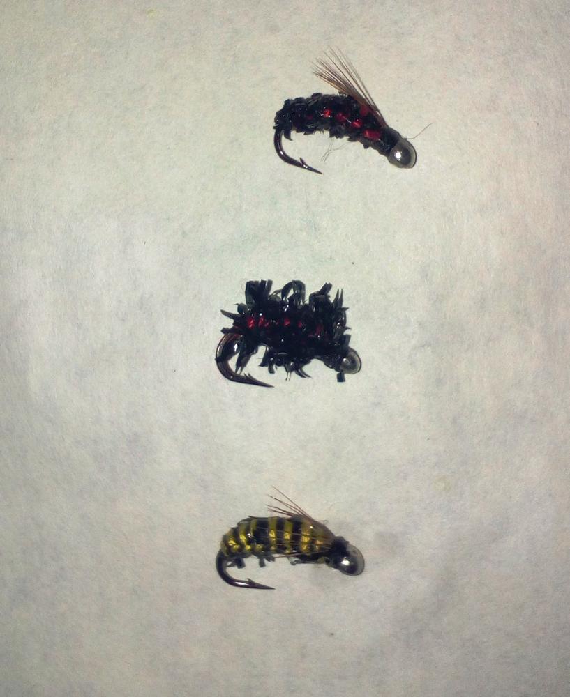 Думаю надо попробывать на более крупных крючках и будет нормально, красный или желтый подслой, несколько витков синели и между витками синели перламутровый люрекс если есть, если нет обязательно возьми, хорошая штука)