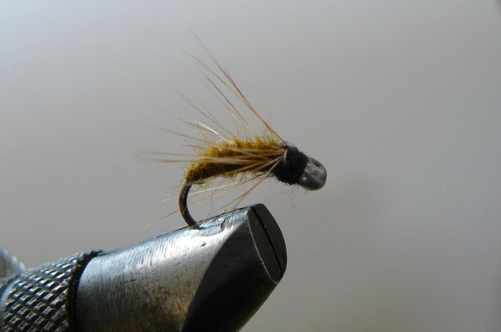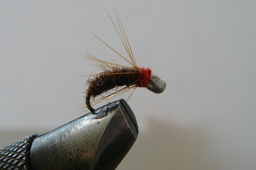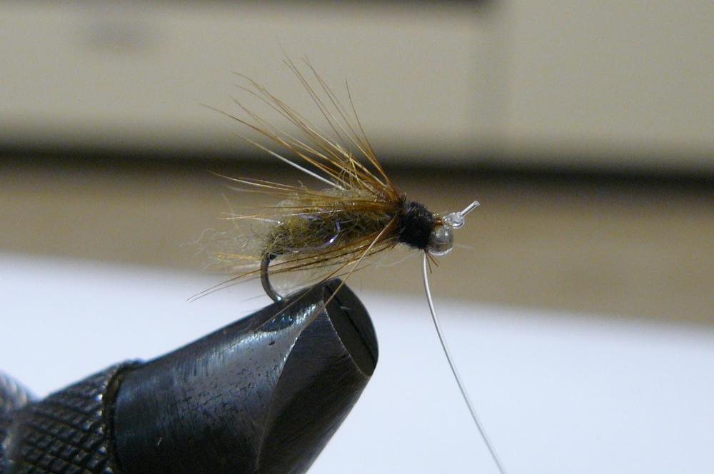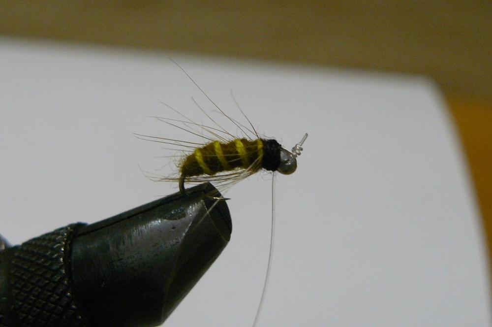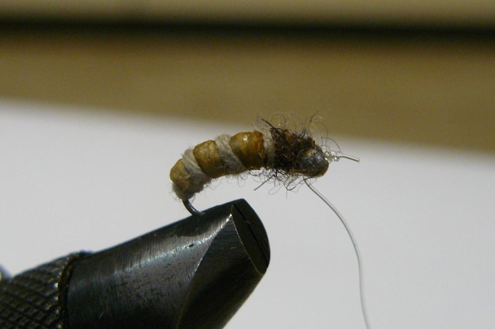 Жопа - шелк оранжевый, брюхо- шерсть одного цвета, спинка - шерсть другого цвета(вообще да, люблю шерсть), подслой и голова- черная монтажка, перо- гризли само-крашеное женской краской для волос. Не рыбачил еще на неё.