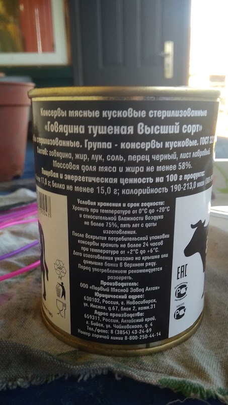 Привет Сергей, Бурятскую тушенку попробуй, раньше брал в банках их Оленину, нравилась, мяса не жалели, а вот жира как мне показалось в банке было мало (х.з. возможно такой рецепт), баночка на потрях шумела.