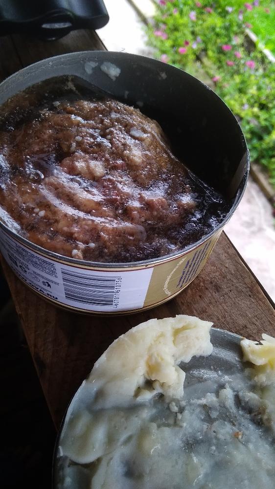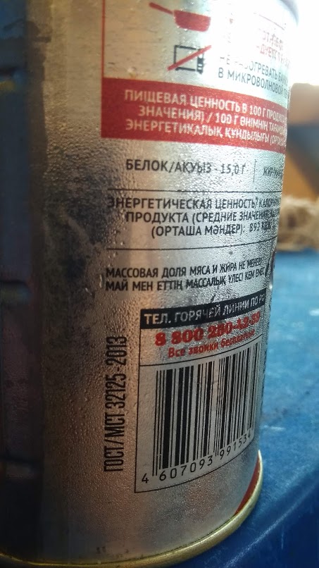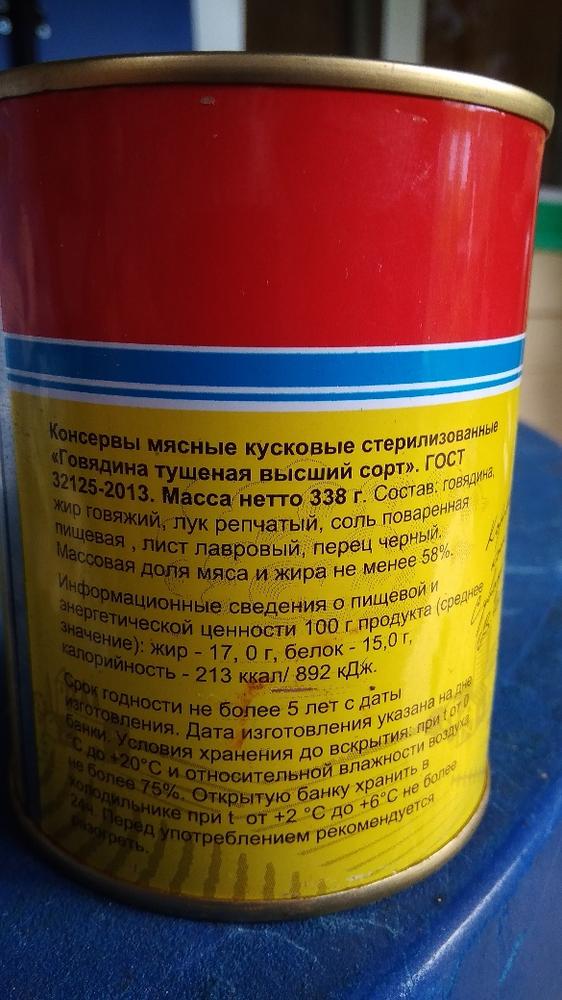 Ещё одна банка на последнее место. Учитывая что такую тушёнку не купить дешевле 100 р, смело ставлю её в моём личном рейтинге на последнее место. Но! Надо же поддержать местного производителя, поэтому на 2ое место с заду.