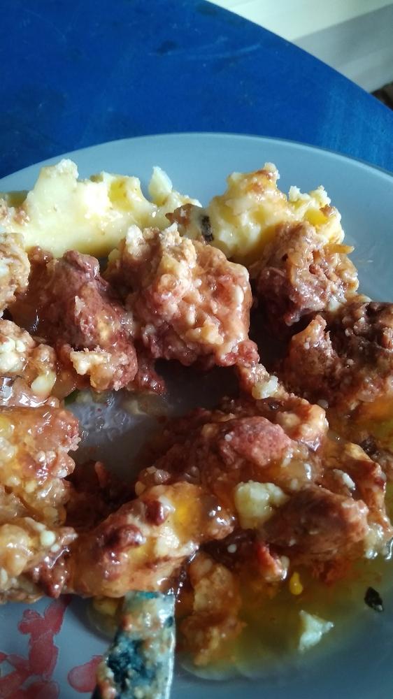Последнее место. Но! В непонятной субстанции точно видны кусочки мяса.