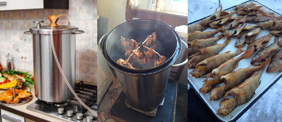 У товарища есть большая кастрюля из медицинской нержавейки обьемом около 6-8л (для дезинфекции мединструментов), он в ней коптит с использованием плодовой щепы горячим копчением.