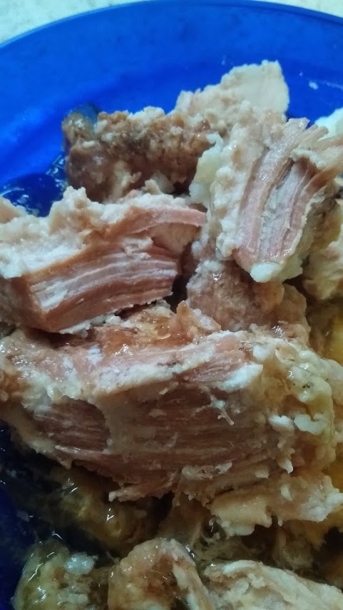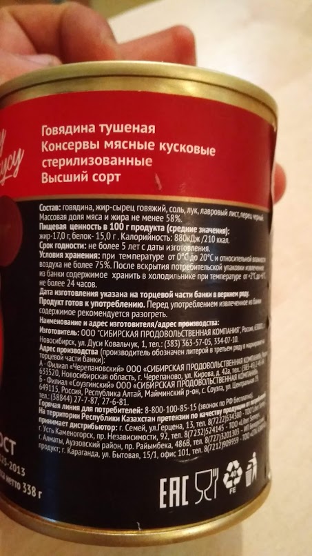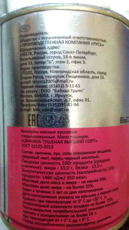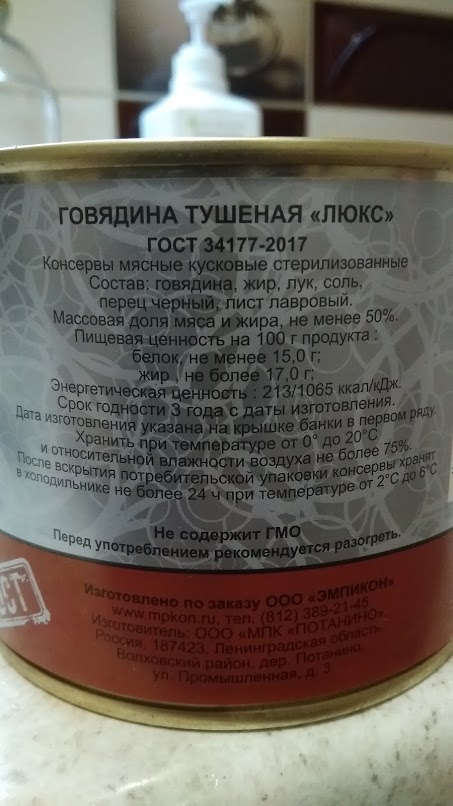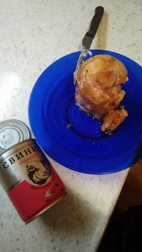 Давно не видел реального мяса в тушенке, а тут прямо оно есть! Примерно процентов 10-15 мяса(кусками). Возможно не свинины, но точно видно что мясо.