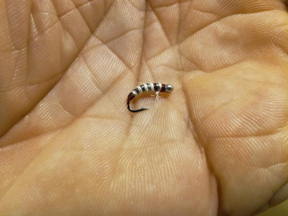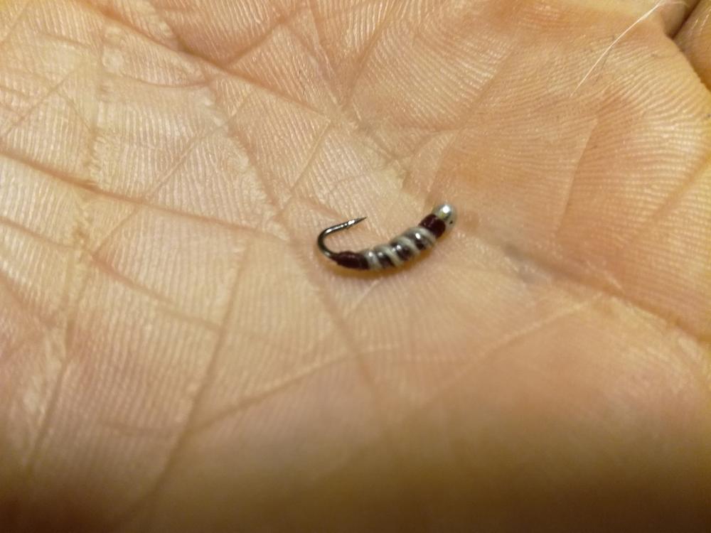 На Тубе, у меня есть мушка, вяжется из ниточки телесного цвета. Поэтому я белесую нитку от чайного пакетика сперва красил. А муха моя вот: