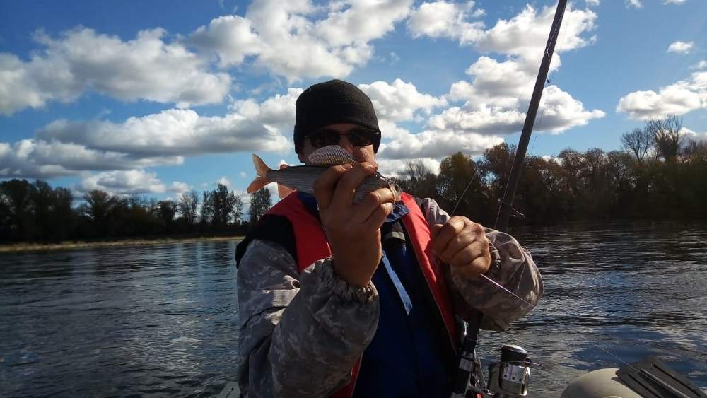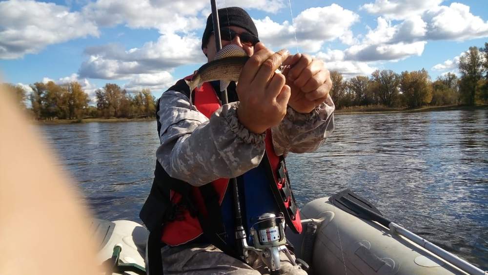 Рыбку нашли в протоках. Стоит собака в полуметре от берега. В русле единичные потычки. в 13-30 закончили, штук 30 пограничников добыли. По мухам работали кембрик и вот эта муха. Собственно и на самом фесте у меня это же и работало. Ты тоже говорят поймал?