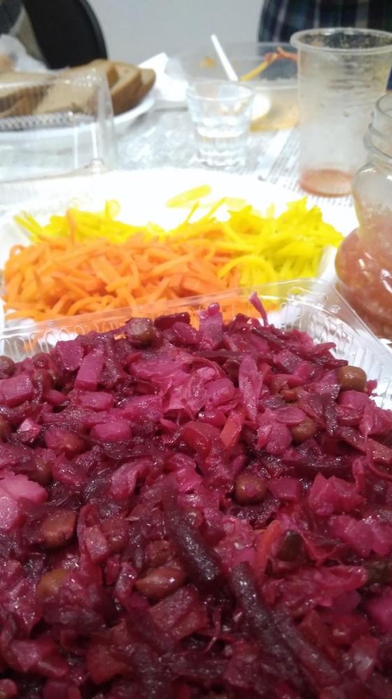 Я, честно, даже не все попробовал. Оливье и салат с кальмарами - мммм, а Серегино горячее так вообще огонь!!!!!!!!!!