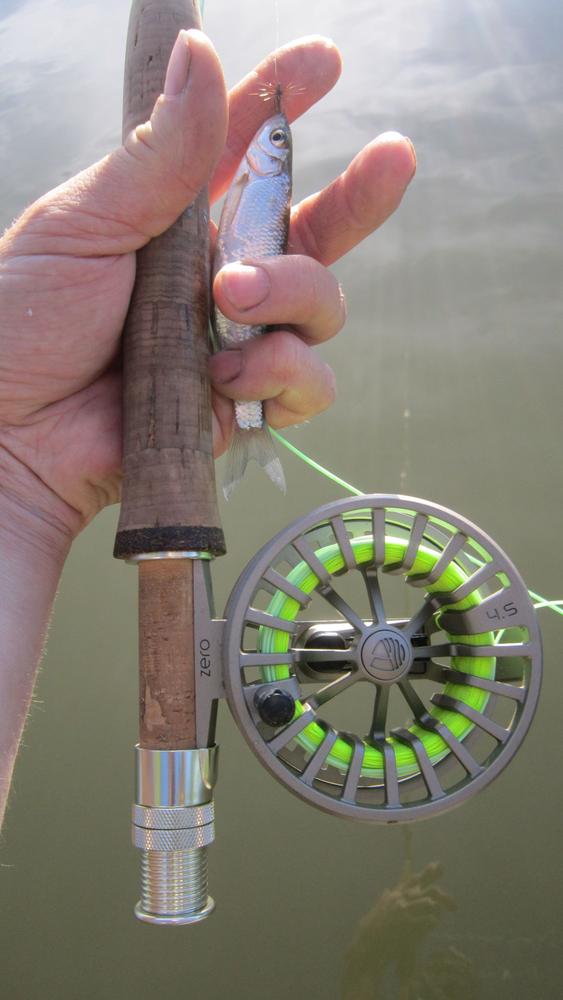 Сегодня вечерочком на часочек выбрался на р.Абакан можно сказать почти в черте города, с прошлого раза уровень воды заметно упал думаю минимум сантиметров на 40, однако по перекатам прозрачность воды оставляла желать лучшего, как говорят сплавщики видимость была на лопасть весла, в общем рабочая... Немного отвел душу, погонял ельчика на сухарика на 16№ под Комарика и немного понимфоманил, короткая нимфа по нолям, а вот дальная была результативная, на неё ловился ельчик покрупнее, порой рыб заглатывал нимфы до жабр. Всяко извращался с забросами и проводками, заброс вверх против течения, под небольшим углом вниз по течению и др... Проводка, длинные медленные и рваные стрипы около 20см, в общем что ему надо так и не понял, думаю причина кроется в низкой прозрачности воды. Ловил Коловской 9 футовой 2-кой, первые впечатления звонкая на поклевки и пощипывания, все удары в руку, а на вываживании на мелочи жесткая, просит рыбку покрупнее... Мелкий ельчик брал на выходах из ям в перекат, а покрупнее брал в полводы в приямках c глубиной 1-1.5 метров. По оснасткам, использовал настрой из двух нимф, нижняя нимфа (зеленое тело) - оранжевая головка вольфрам 3.3мм джиг крюк 14№ и 40см выше вторая нимфа(зелень, сегментация люр серебро) огрузка головка латунь 2.8мм крюк скуд 16№...