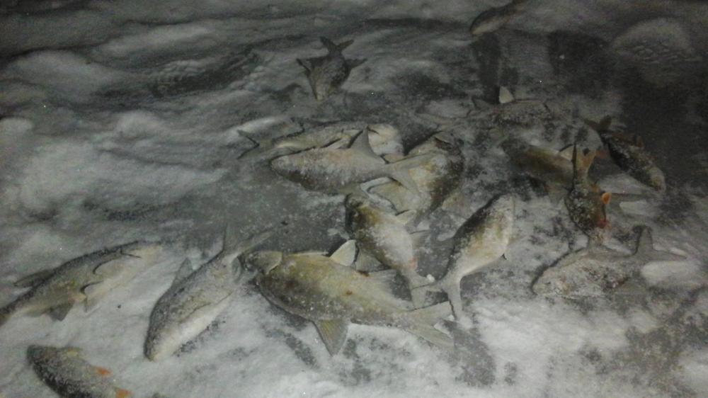 Место не очень,пол ночи редкие поклёвки. Да вчера один уезжал,почти мешок мороженой поймал,ну я в двух метрах забурился.