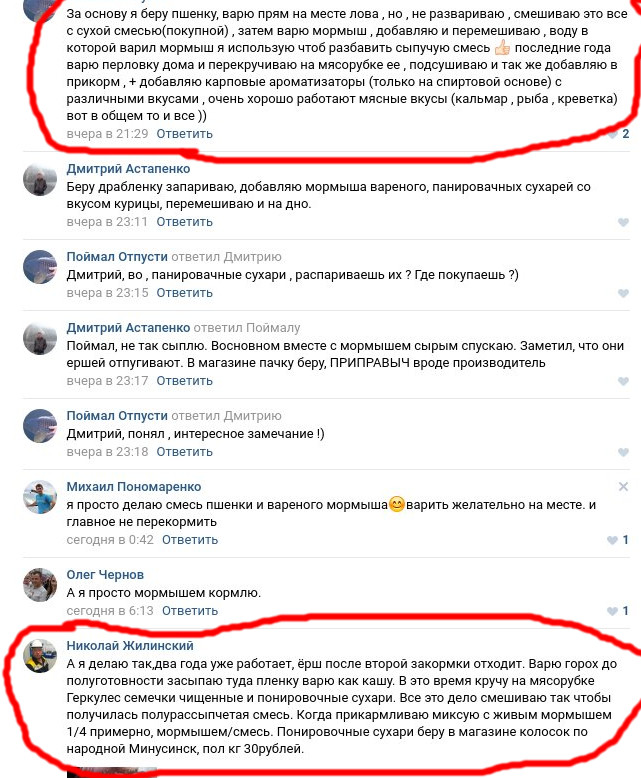 Затем сушеным мешаю с комбикормом и на рыбалке добавляю водичку. И в лунку.