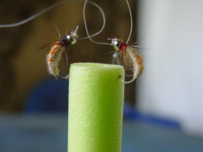 Мухи - табачка, скрутка с нитки "под табачку", Хит, скрутки с ниток "под Хит", плетенка черная с оранж-ирис. Ловили на балду. Ребята в пятницу ловили на верховые.