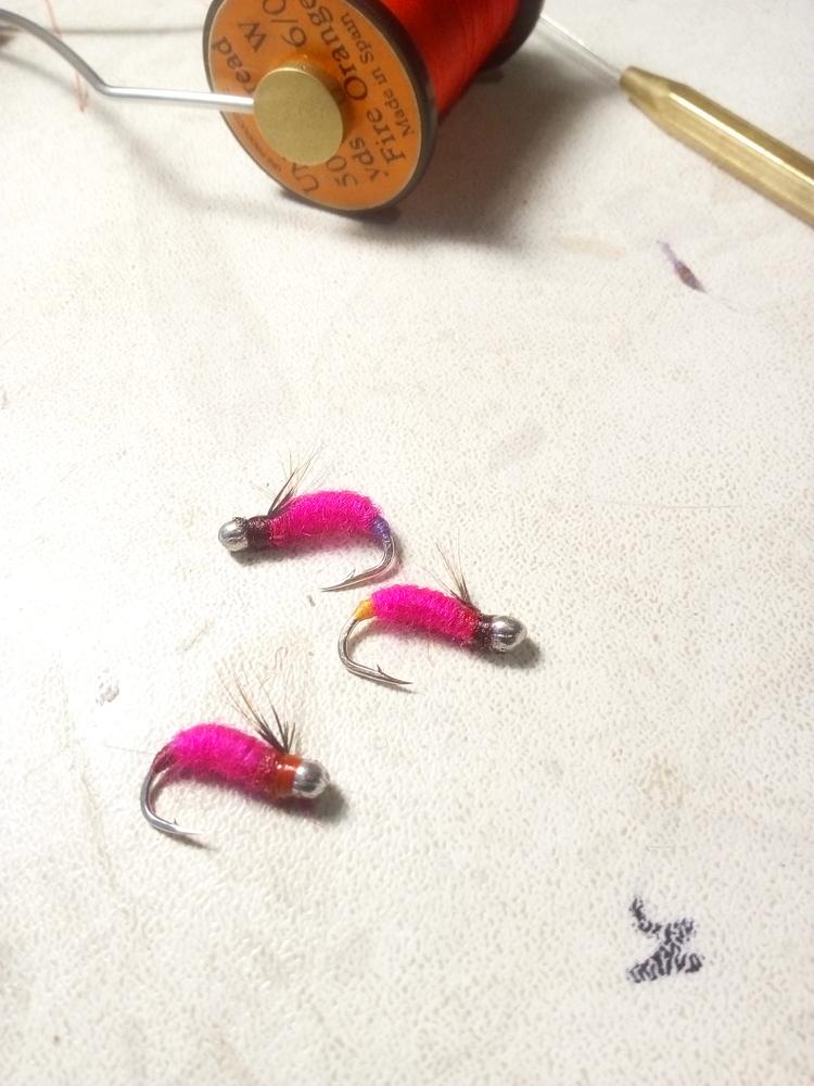 Рабочие мухи,свекльная с красной башкой,сиреневенькая с черной промоткой,черная с оранжевой жопой и красной башкой,несколько на лохматуху.
