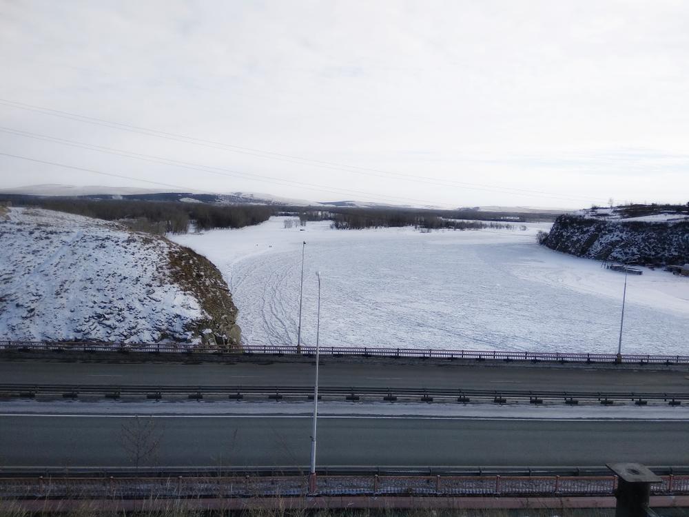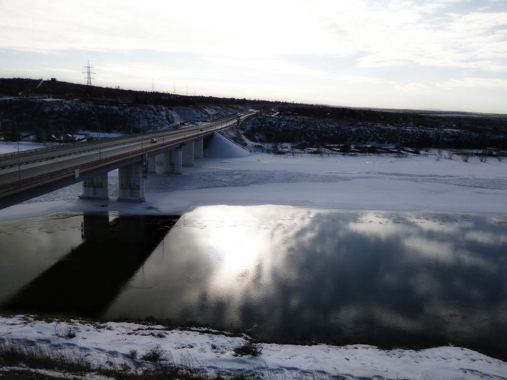 Сегодня в обед заходил на торос лунки бурил до кромки с открытой водой было около 3-4м, толщина льда на сильной течке разнилась в среднем около 10-15-20 см, а под берегом в тищи под ручку бура. С обеда наблюдал как с понижением уровня воды в Енисее лед трещал и на торосы сверху вода пошла, а ежели бы больше уровень воды в реке упал поломало бы те торосы...