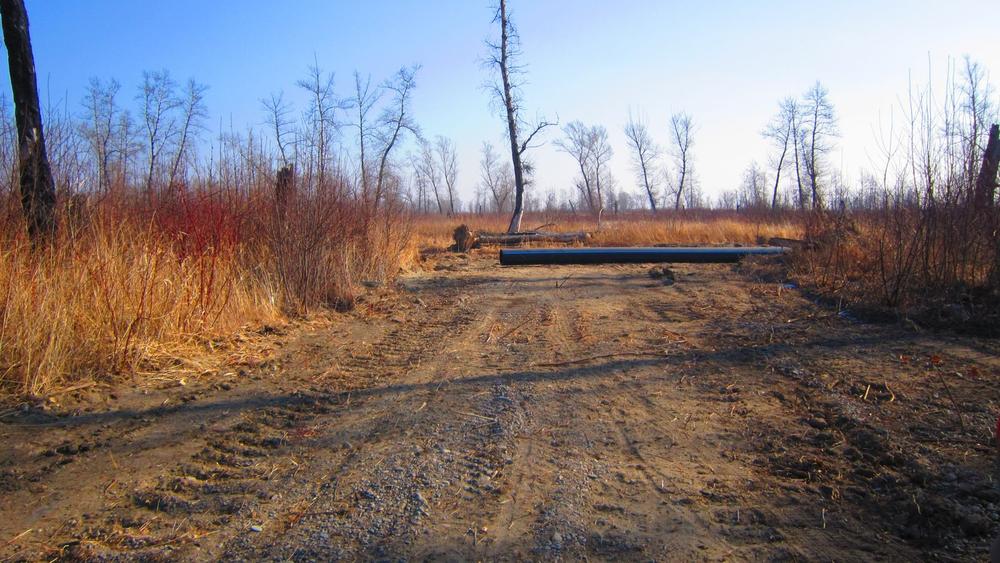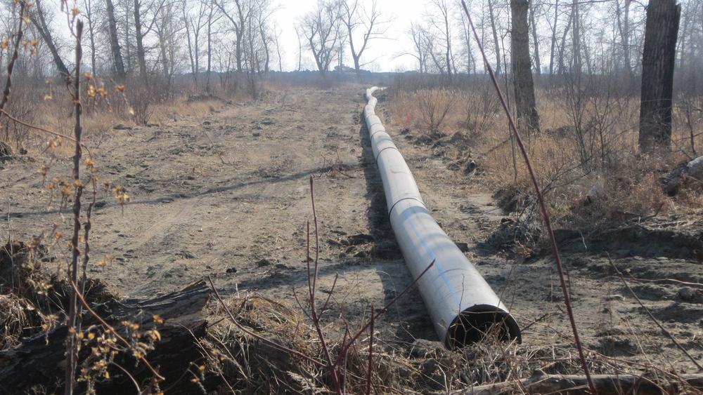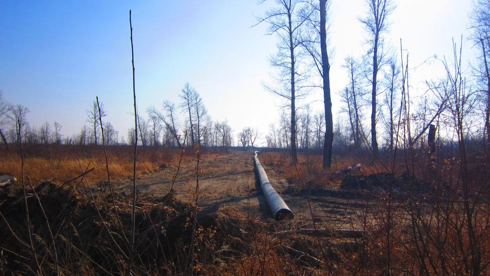 На нижнем снимке, в нижнем левом углу красной линией указано место прокладки трубы.