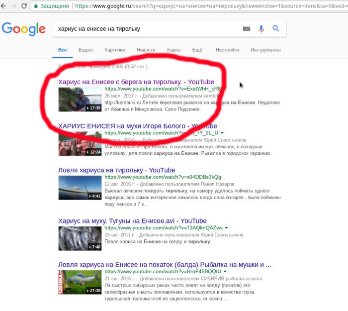 Зы: сегодня вбиваю в поисковик гугла фразу "хариус на енисее на тирольку", на что он мне ПЕРВОЕ что выдает: