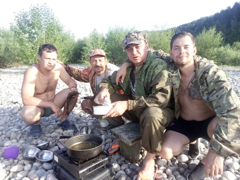 Всем привет , только вернулись. Вода высокая , такая же , как была в прошлом году ,но светлее. Скорость течения 7-8 км.час...По рыбе скромнее , чем в прошлые года , но РАЗМЕР )))))) Не знаю , что сказалось , или рейды инспекции , или что иное , но кабаны попадались очень часто. Мелочи мало , да мы ее и не брали . В первый день на малосол и все. Рыбу на стоянках ели всякую : вареную ,жареную , соленую , копченую... С нами ездил мой товарищ Эдуард , он нас угощал запеченным в золе, в фольге, ленком , с луком и лимоном , пальчики оближешь... В очередной раз удивляюсь рыбацким способностям этого человека. " Сколько вы съедите ? Два- три? Сейчас привезу , ловите хариуса на уху " ))) И ведь ловит.... В этот раз на стоянках отдыхали с комфортом , стол , кресла , шатер )))) Как оказалось , шатер в тайге это ВЕЩЬ )))) Защита от комаров уменьшает на нет габариты и занятое место в лодке )))) В воскресенье вечером и сегодня утром был дождь , но не критично . Сегодня утром , была поклевка монстра , даже не понял кто это. 2 раза подводил к лодке , рывок , фрикцион , форсировать никак , поводок 0,25 , на третий раз показал пятнистый бок с красным хвостом и до свиданья ))))