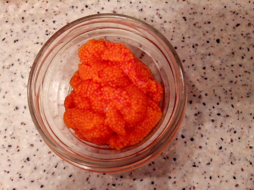 Привет всем! Короч поймали тока мы с Витей, а Рома одного еще. Витька поехал домой в районе 17-00, у меня был один штук, едва зачет. Потом из под берега взят кабанчик, потом из далека еще один, тока подкабанчик, как карась. и опять же из далека на кембр белячок и фсе.Рып стоит очень далеко от берега 80-90 метров. Про начинку- глядя на толстое пузо кабанейров, я предвкушал уже бутер с икоркой. Дома вспорол, опаньки молоки! Витька кстати классный рецепт рассказал, я их и приготовил в духовочке по его рецепту (Жена довольна, очень вкусно говорит), правда одному хвост отрезать пришлось длинноват оказался не влез на листик. Из пойманных 4 шт- 3 шт на кровянку и 1 на кембр с оранжевой бусиной.