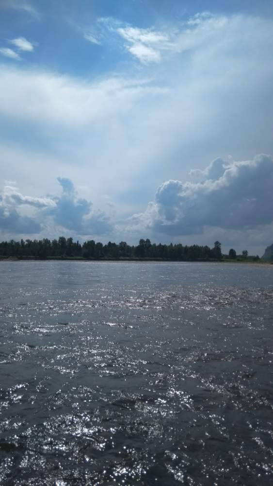 Всем привет. В субботу-воскресенье сплавились от Курагино до Городка. Хариус клевать не хотел, а тот, что клевал, брал на кембрик и болотную. Желудки у хариуса и в субботу и в воскресенье пустые. Вода маленькая, течение слабое. Подпор начинается чуть ниже последнего переката. Погодка конечно порадовала.
