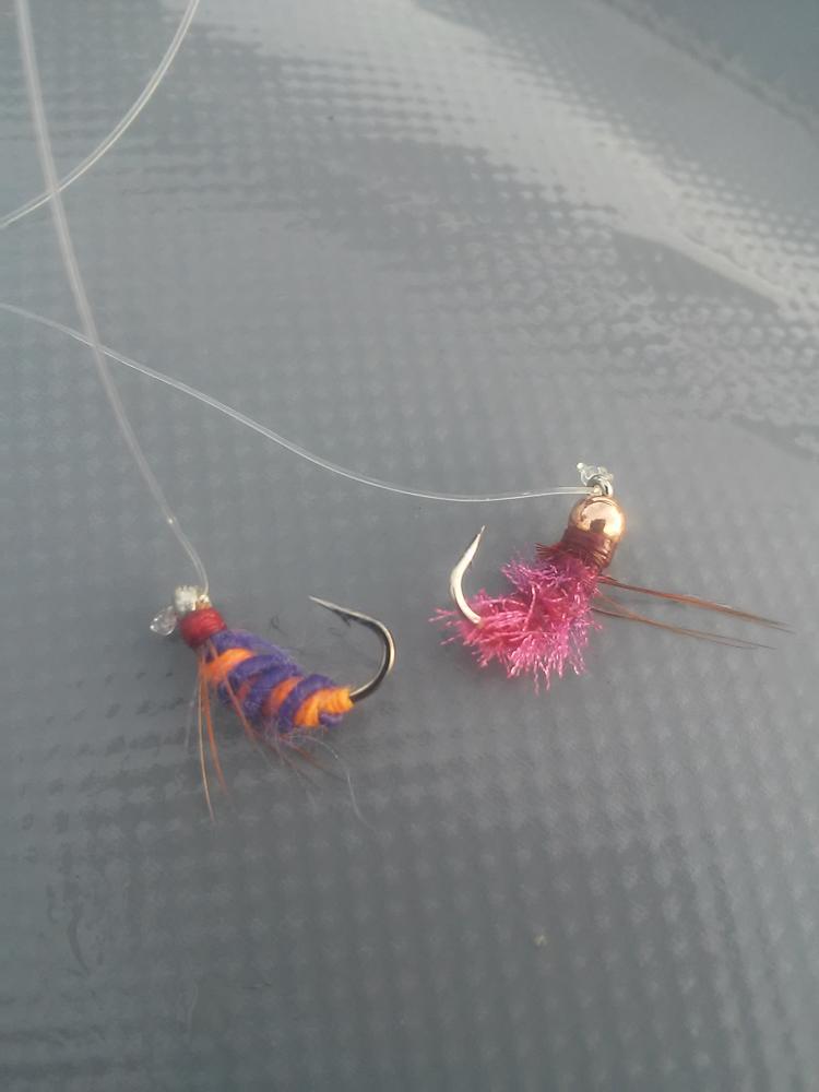Был сегодня на реке , удачно. Стабильно работали вот эти мухи ( сплагиатил у Paramon и eVgen ) и кембрик. Были поклевки на кабанчика и черную с золотом