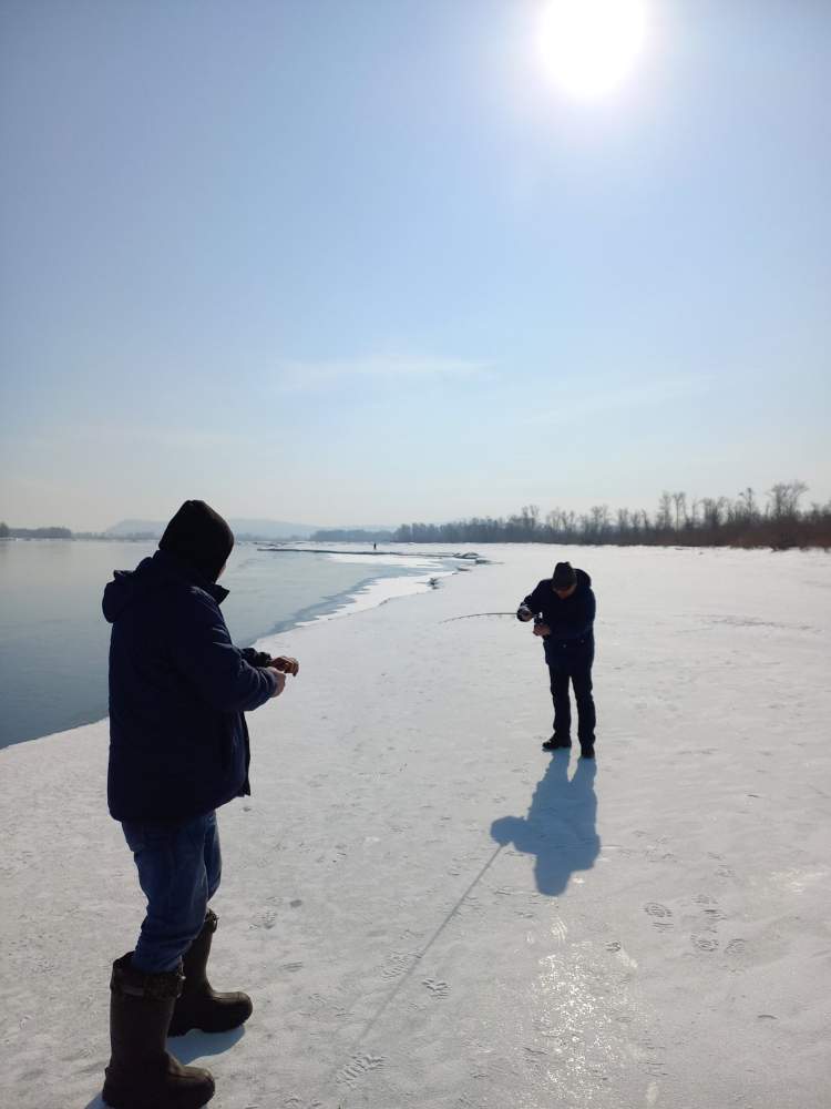 А наш друг, вдруг оказался у кромки. Трудно сказать что он там делал. Мы предположили что он решил ловить вприглядку.
