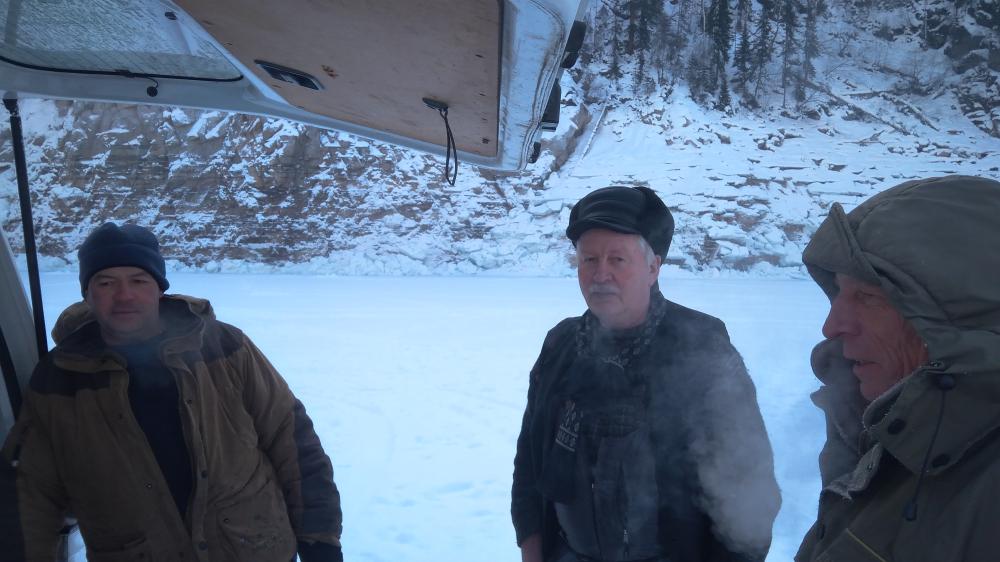 И не смотря на просторы, мы ехали ехали, и правда, уперлись в машину Александра. ребята нас по честному ждали, и по хорошему по доброму встретили. "За знакомство" и я пробурил Иванычу лунку прямо возле машины. И понеслось "вверх вниз, вверх вниз". Так до вечера на одном месте.