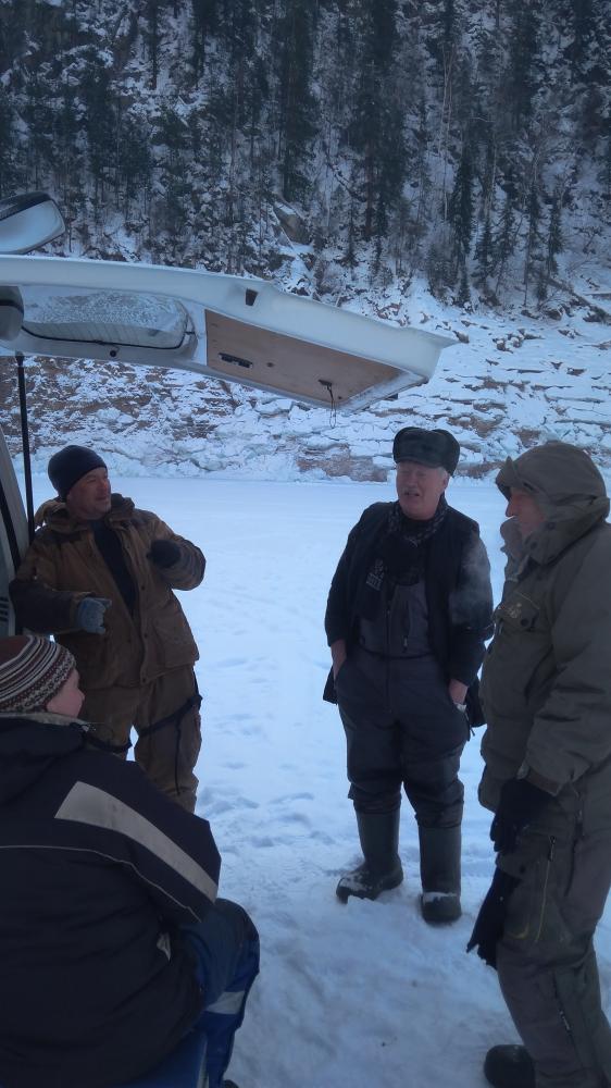 Бурю рядом еще одну лунку. Ставлю третью удочку. Через 10 минут поклевка. Ура. Взрослый половозрелый хариус, ну точно больше 23 см. На енисейскую фаворитку.