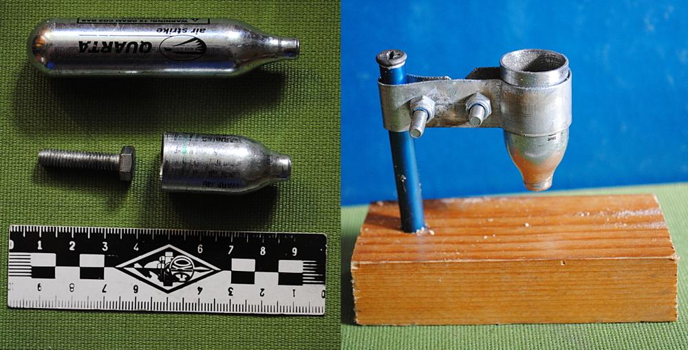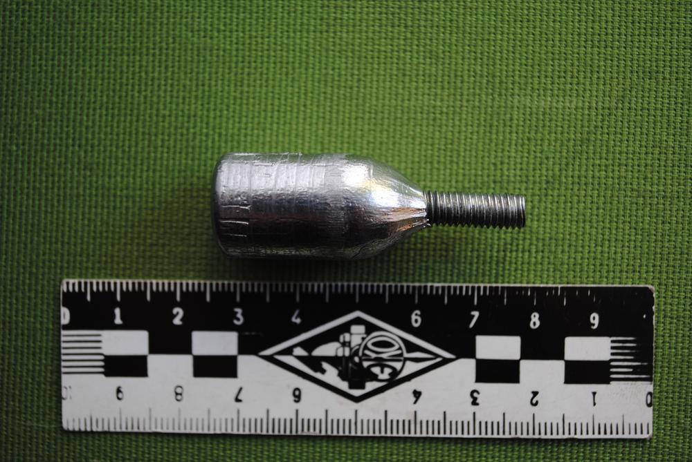 Баллончик используется в качестве формы. Ну скажем по аналогии с формой, высверленной в деревянном бруске. Вынимается свинец просто: перевернул и стукнул по выступающему болту. В результате получается вот такой груз: