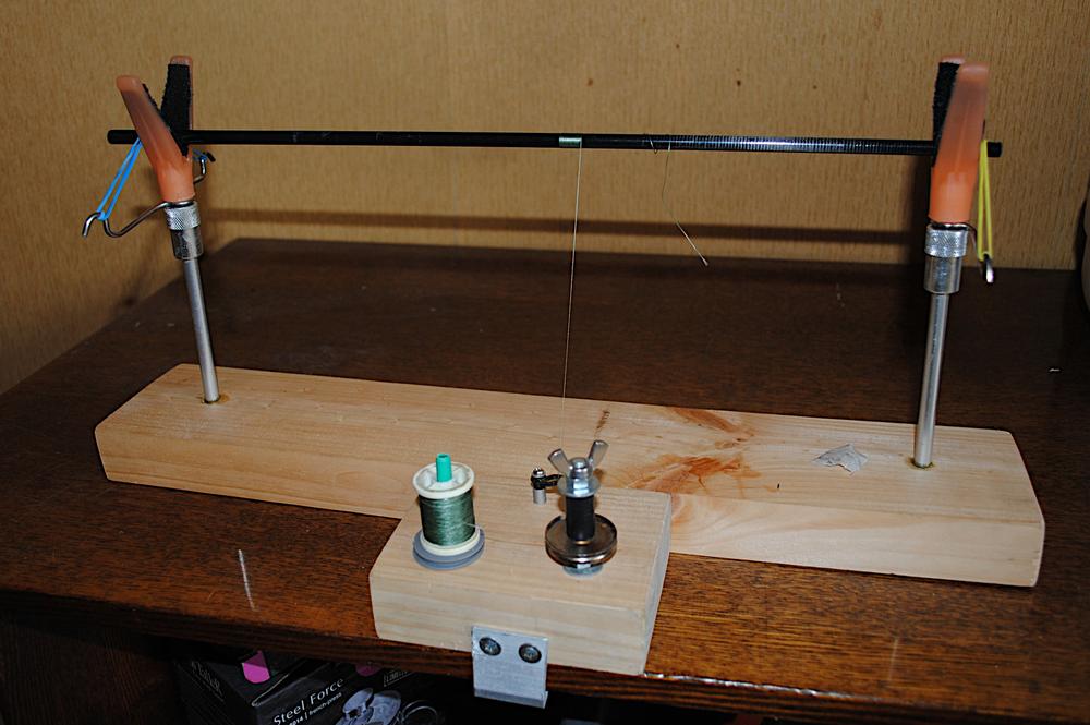 Сделал стапель для примотки пропускных колец к удилищам со шпуледержателем, натяжителем нити и направляющим кольцом. Понял, что без него будет трудно. Собрав три спиннинговых и одно нахлыстовое удилище на «коленке» изрядно помучился. Еще планирую собрать пару удилищ и поэтому сначала сделал стапель. Результат работы и пробная намотка нити на фото.