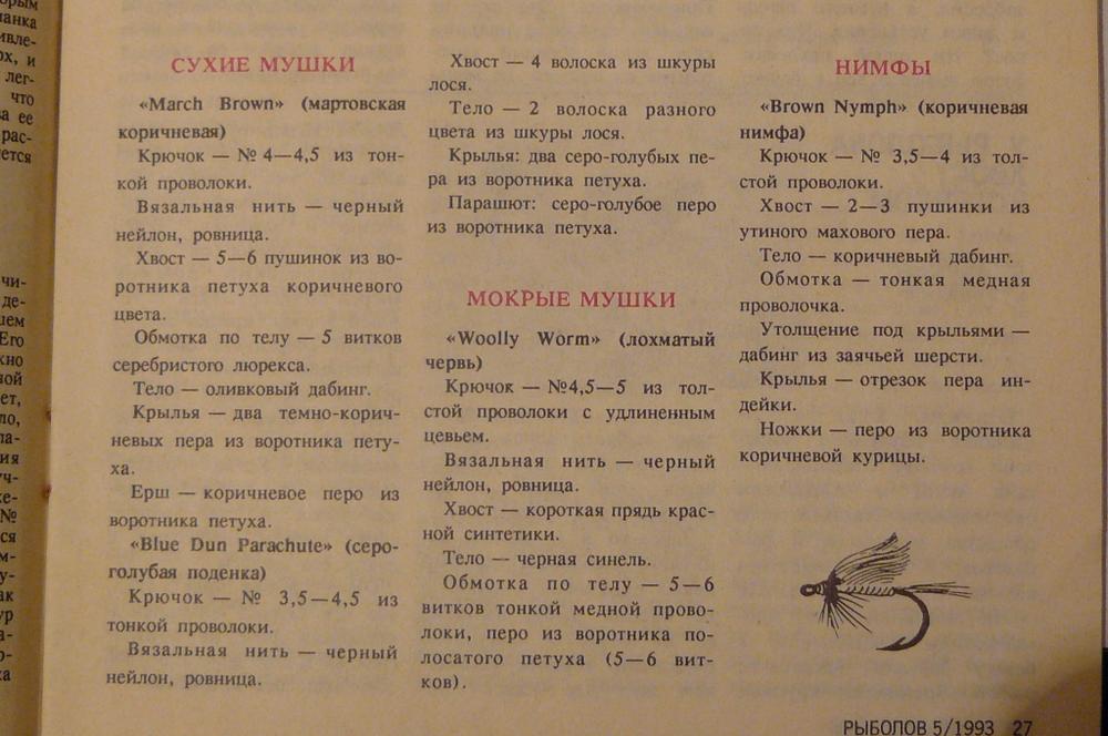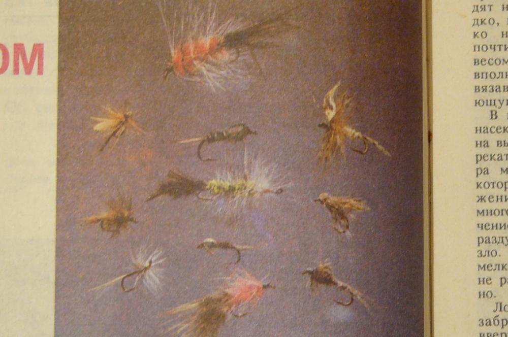 Когда я был маленьким, я тоже отдыхал в пионерских лагерях...(с) Так вот, проживали мы тогда в Тыве, г. Ак-Довурак, ловился там хариус на снасть кораблик(торпеда, санки etc). Мухи там применялись исключительно верховые по теперешней классификации, продавались только в метрополии или в крупных городах (а может и не продавались, хз), а рыба вот она тут, и для её поимки делались разные самоделки. Снимка санок нет, есть фото мотовила с мухами. Леска на основе около 1,0, на поводках около 0,3-0,25.