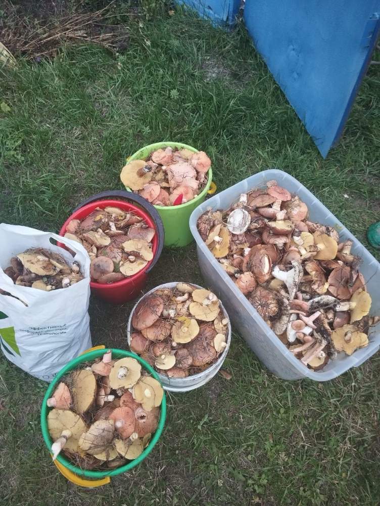Были в субботу за Крупской, собрали 8,5 ведер, 2 ведра груздя, 1 ведро опят, 2 ведра рыжиков, 3,5 ведра маслят...
