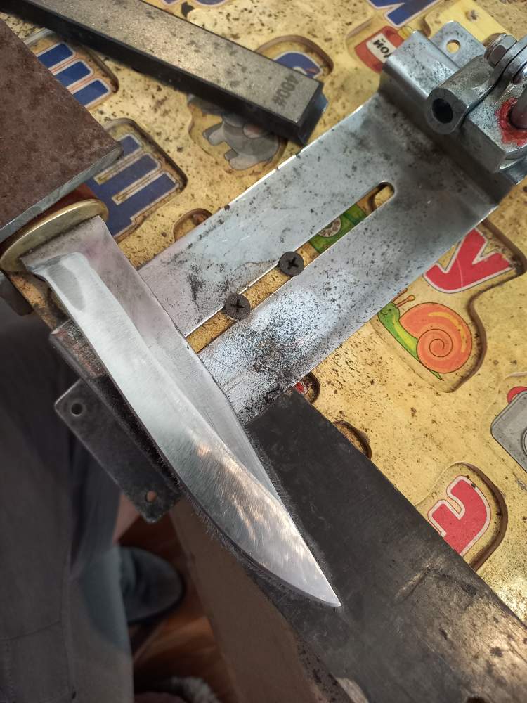 Дальше надо будет решать. Или снимать ручку и закаливать и отпускать. Одевать ручку и точить, полировать. Или оставить так и все усилия и время потратить на новый нож с нуля...