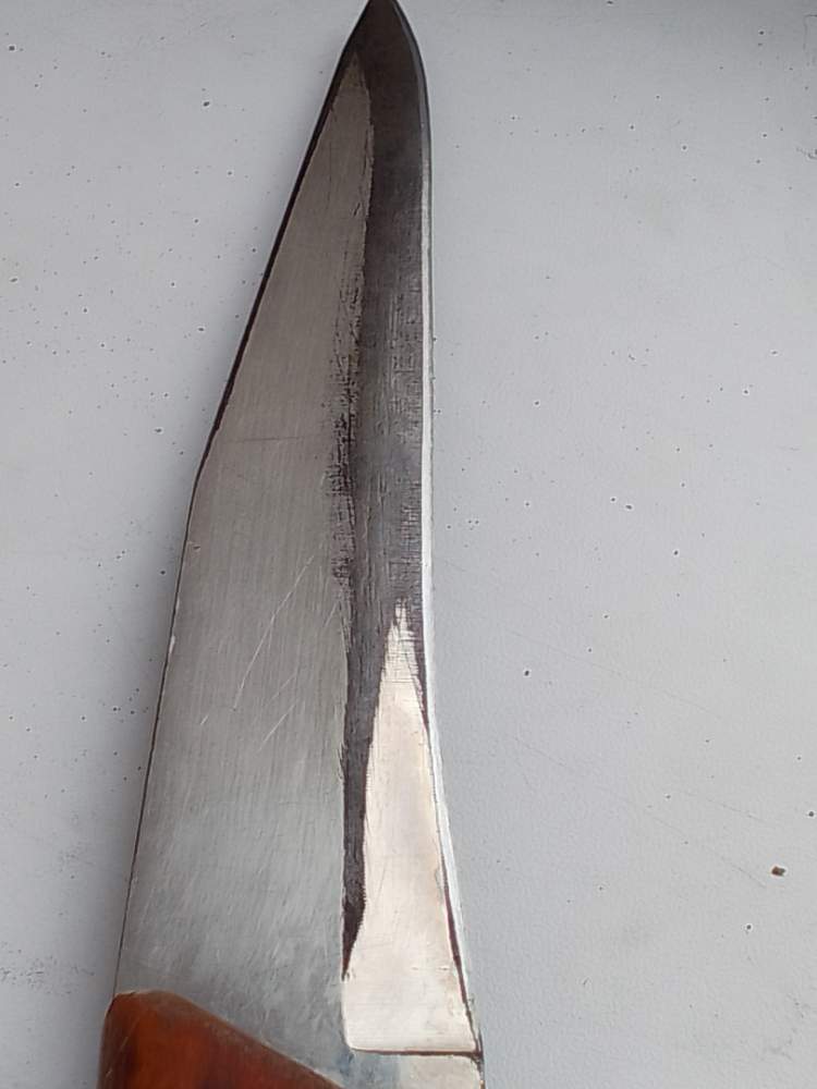Вспомни некоторые старые советские ножи, и первые китайские. Они почти всегда с покрытием никелем или хромом были. Самый лучший рез, но ржавеют сильно. Белочки-рыбки, и похожие. 2х видов сталь шла. Те которые со знаком качества - из высокоуглеродистой стали, с покрытием. За лет 15 потерял именно таких минимум 3 штуки. Дома столовый такой есть, ещё из первых китайцев. Но это не быстрорежущая, но близкая. Повязче она. ПС. Этот нож не выдержал ковыряния в мороженом мясе-кончик сломался. Сверху снимал около сантима.