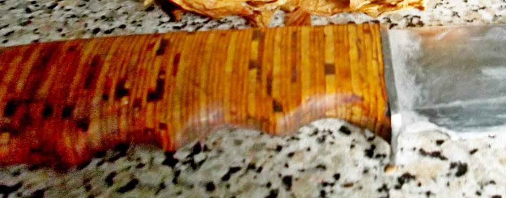 Есть у меня из быстрореза нож, линза в ноль, без подвода. Только линзу осознавать стал году в 2000. В гостях у токаря в гараж сделал из маятниковой пилы. Лет 15 на хорошем корунде доводил линзу каждые посиделки в гараже. Хорош по мясу, но тонковат рукой давить сверху. Одну сторону даже крупным алмазом успел шлифануть(тёмную). Такой он стал за год лежания на шкафу. Надо салом смазать.