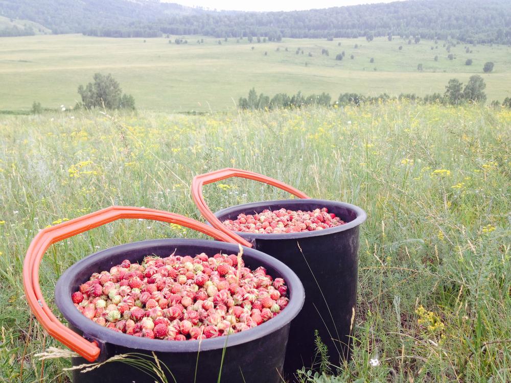 В аскизе. Съездили с батей за клубникой. Набрали по ведру. Ягода есть.
