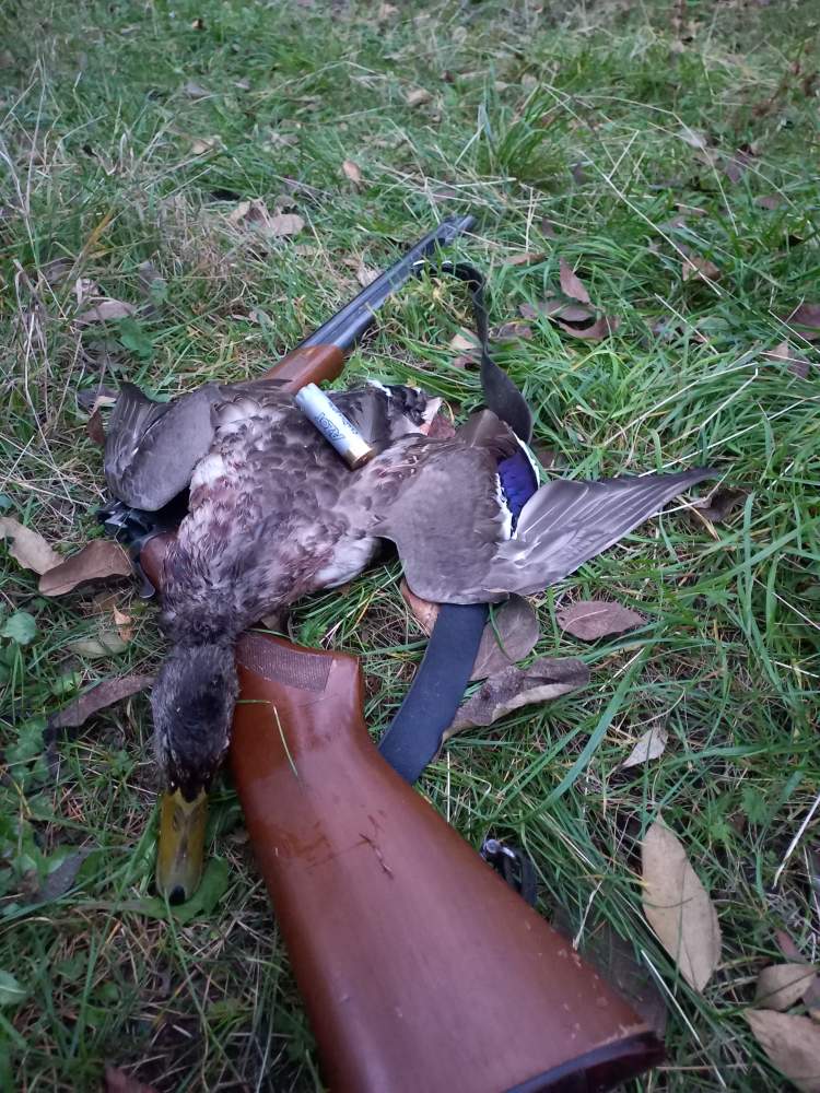 Зашли так же красиво, но пара. Выбрал селезня. Выстрел.