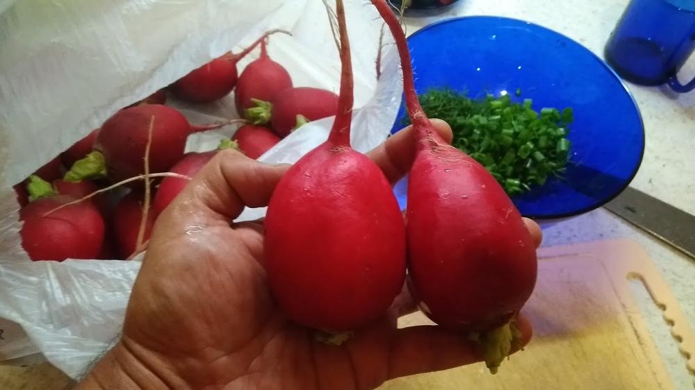Редиска в этом году гигантелла и без червей. Две штуки и тазик салата ))