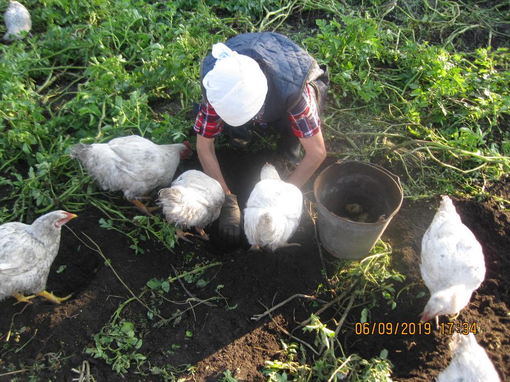 Пока лопатой под хвост не дашь, не дают копать. Как лап на холодец не нарубил, не знаю. Около 100 кустов - 30 ведер, меньше куриного яйца не брал. Ещё копать кустов 40. Лет 20 такой картошки не видел. п.с. Фотик брат забыл.