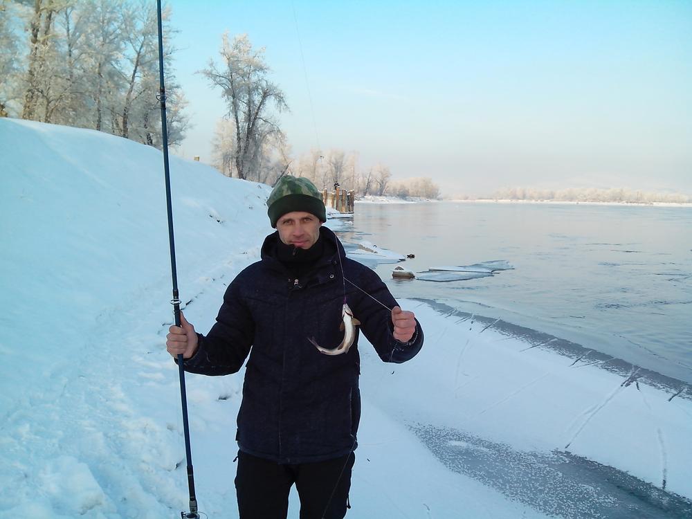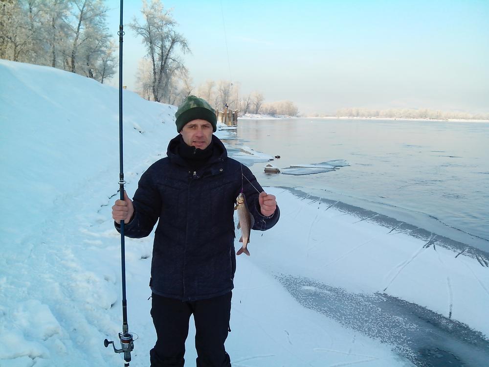 Всеобщий привет! Побывал сегодня на Енисее, заехал в район Быстрой, покидал чуть балду, никаких просветов, поехал на понтоны. Там встретил Сергея, он при мне вытащил хариуска и поехал домой, поймал на фиолетовый кембрик с блёстками (его общий итог 2 шт и куча сходов). У меня с собой не было, презентовал оснащенный. Я побалдил-0. Размотал тирольную удочку, и вымутил хариуса на кровянку, связана из подарочной шерсти от Евгения.