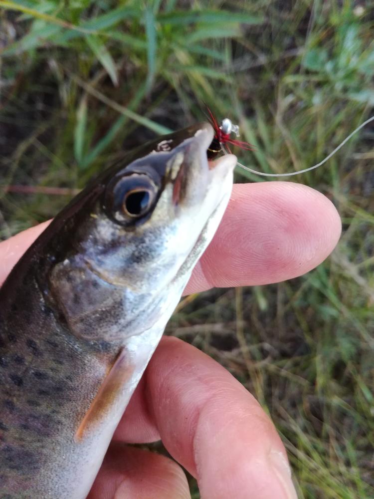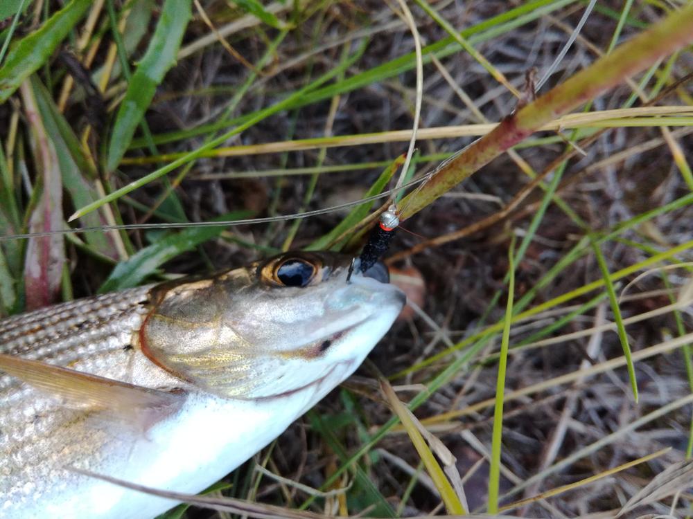По рыбе - стало значительно веселее. Мелочи по прежнему много, но уже и нормального, съедобного размера рыбы достаточно. Вчера 5 штук среднего размера домой + 1 кабан. Сегодня пять домой, размер средний. По мухам за два дня стабильно: кембрик панасоник силиконовый, кирпичка с фиолетовой промоткой (лучшие результаты), муха под живого мормыша, кабанчик.