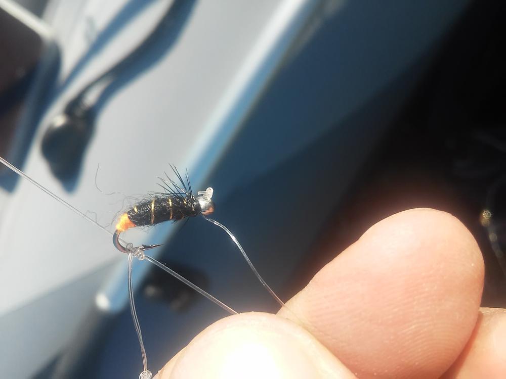 По мухам сегодня у меня силиконовый кембрик и черная с желтым брюшком (разловил новую, вчера связанную). В прошлом году по этому времени уже было повеселее значительно.